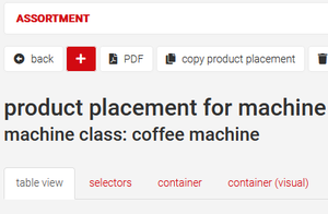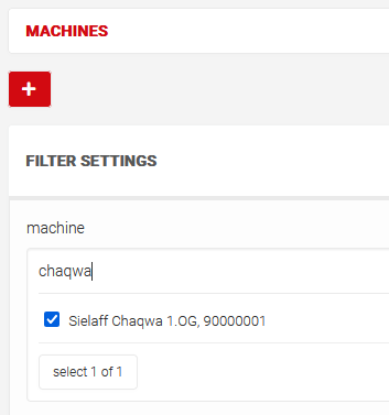 In Vensoft at machines ⇒ assembly create the new product "cup" in the inventory of the corresponding hot beverage machine. To do this, search for the inventory of the machine you want to configure using the filter, select it, and click the "+" button.