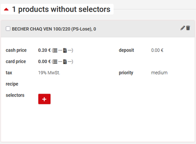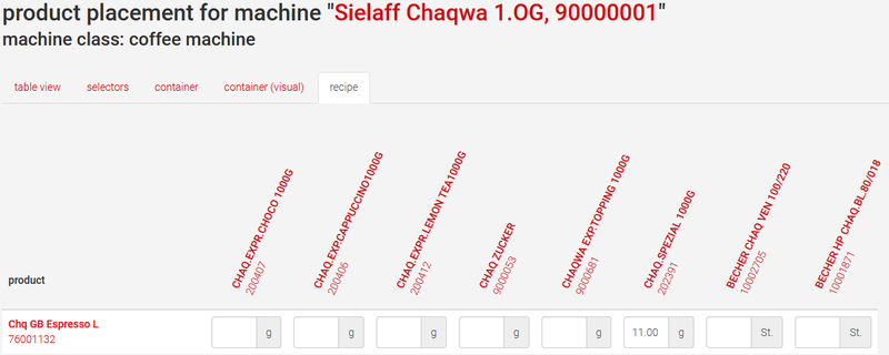 The exact composition of each hot beverage is specified in the inventory under ⇒ "Recipe". Here, assign exactly one item to each product, which can be purchased with or without a cup, for the product ingredient "cup".