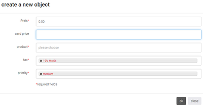 The next step is to create the product "cup". If multiple cup sizes are available, a separate "cup" product must be created for each cup size (e.g., "large cup" and "small cup"). Save with "OK."