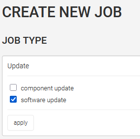 Enter "Update" for the job type to select and apply the software update.