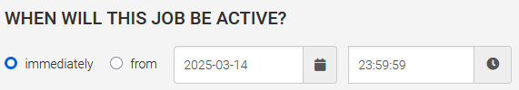 At "When is this job active?" you can select the time when the update should be performed. You can choose either "Immediately" or at a specified time in the future, which you can set using the "From" option by selecting the date and time.