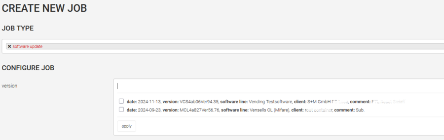 Select Software Update as job type