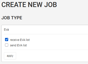 Enter "Eva" for the job type to select and accept "Receive EVA list".