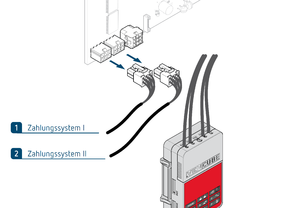 | After 3 minutes, LED 1 = 1x red flashing, the credit systems are also switched off and LED 1 lights up red permanently | see "1x red flashing" | |