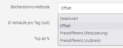 Zum Schluss muss in der Vensoft unter Automaten ⇒ Automaten in dem jeweiligen Heißgetränkeautomaten die Becherstorno Methode "Offset" ausgewählt werden und speichern.
