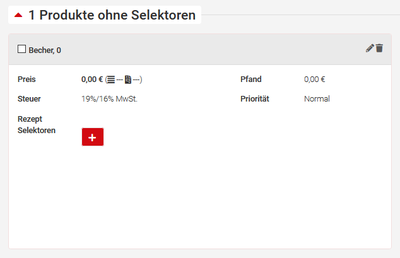 Nun ganz unten in der neuen Bestückung "Produkte ohne Selektoren" aufklappen und auf den "Button +" klicken.