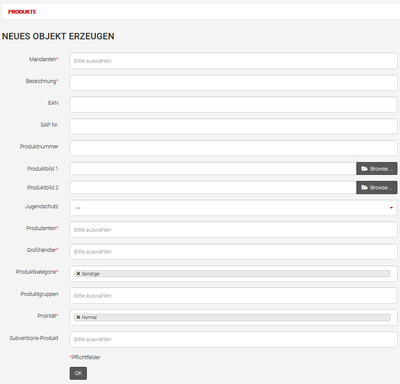 Im nächsten Schritt wird das Produkt "Becher" angelegt. Sind mehrere Bechergrößen vorhanden, muss für jede Bechergröße ein eigenes Produkt "Becher" angelegt werden (z.B. "Becher groß" und "Becher klein"). Mit "Ok" speichern.