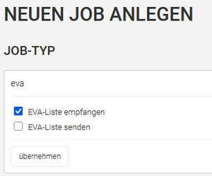 Beim Job-Typ "Eva" eintragen, um "EVA Liste empfangen" auswählen zu können und übernehmen.